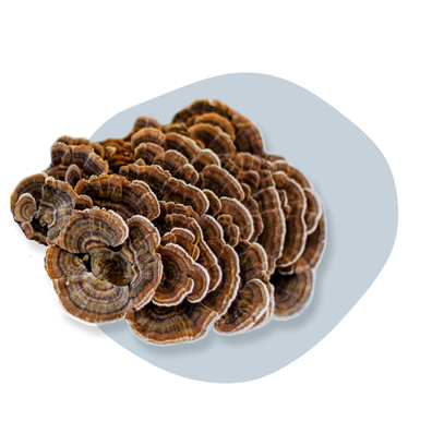 Turkey Tail is a functional mushroom that acts as a prebiotic to support gut health. The gut is a so-called "second brain," helping you to maintain mood and a healthy response to stress. It also helps the immune function, reinforcing the more than half of the body's immune cells that exist in the digestive system. Read more about Turkey Tail mushrooms in The Umbo Functional Mushroom Playbook and see other products that include Turkey Tail in them.